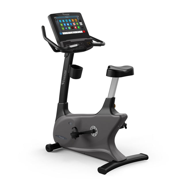The Vision U600E Upright Bike features the classic design cycling enthusiasts need for a pulse-pounding ride, plus extensive entertainment options. Multi-position handlebars make it easy to shift riding positions, and the comfortably contoured seat easily adjusts to give users of all sizes an ideal fit. The large touchscreen console elevates the experience with popular apps, exclusive workout programs and streaming entertainment.