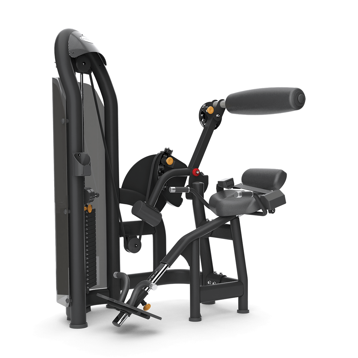 Our equipment offers adjustable non-skid footrests for secure positioning, a pivot position promoting coordinated hip and lower-back muscle function, and a lower-back reference pad encouraging user alignment, all complemented by cushions ensuring proper body alignment and support with a distinct and attractive design.