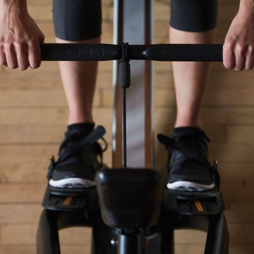 Our rower tilts up to minimize its footprint, and built-in wheels make it easy to roll the rower into storage or to a new place on your circuit training floor.